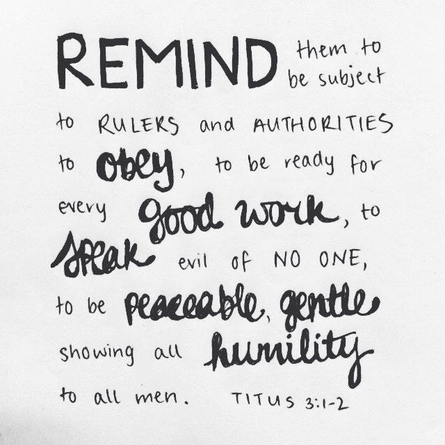 I believe the principle in Titus 3: 1-2 (the verse that is the feature image for this post) is this: as Christ’s followers, we are to develop these types of qualities.